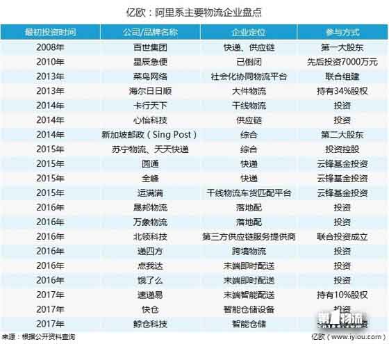 此前亿欧曾在一个求“协同”,一个唱“共生”,刘强东跟马云“撞衫”了?一文中盘点了阿里系主要物流企业: